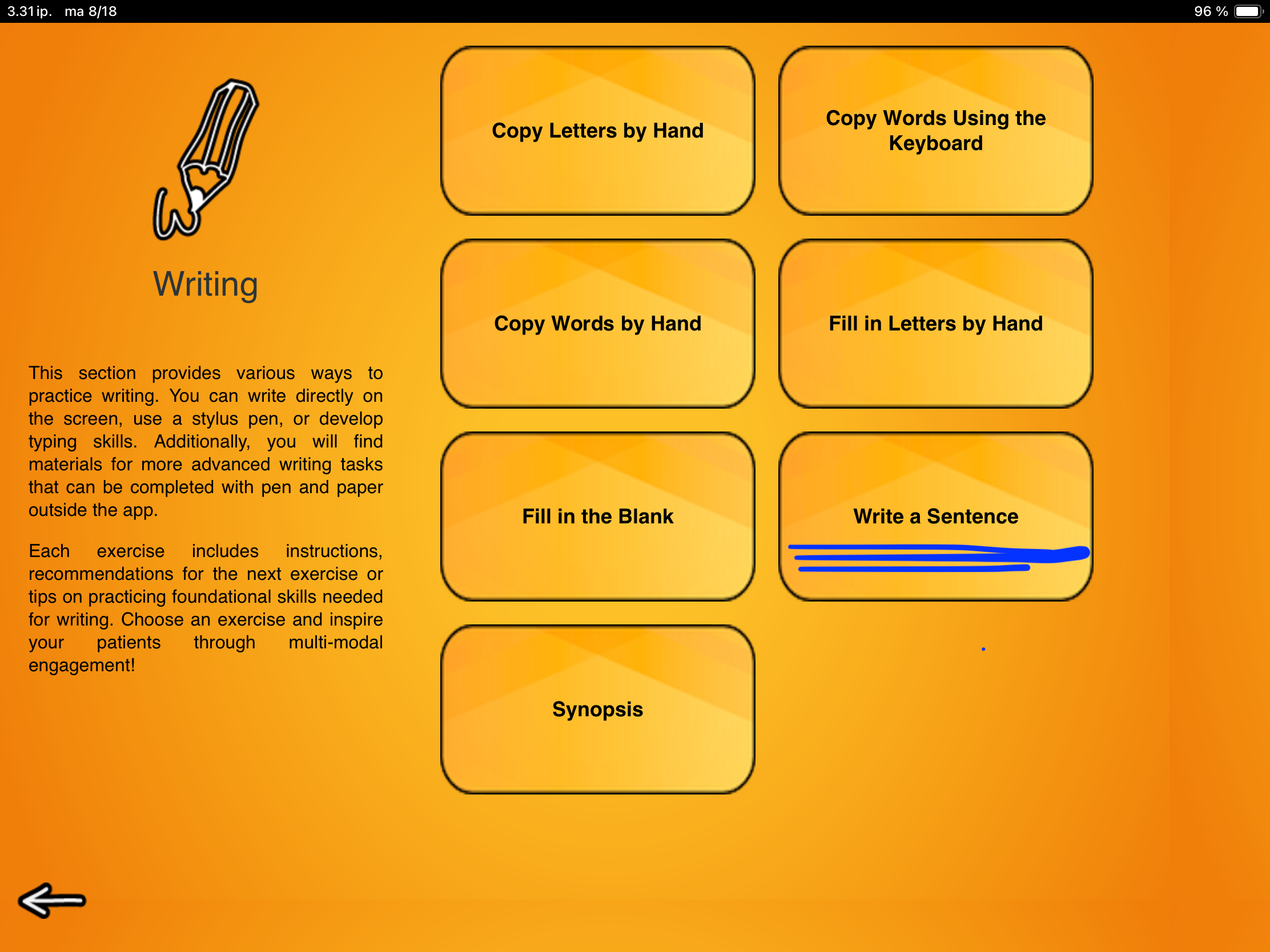 For the writing task, the client needs sift through all of the visual information and make a plan: What do I see? What do I want to say? What information do I focus on? What information do I leave out? What can I say in one sentence? How do I find and organize the words to convey what I want to say? That is wide range of cognitive and language skills at play.